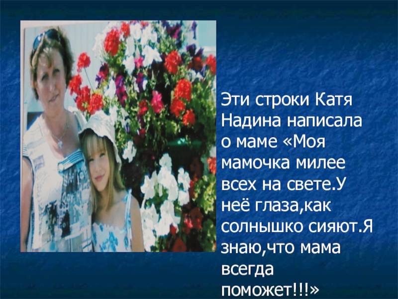 Слайд 6Даша Каткова так пишет о своей маме: «Мама! У тебя самые