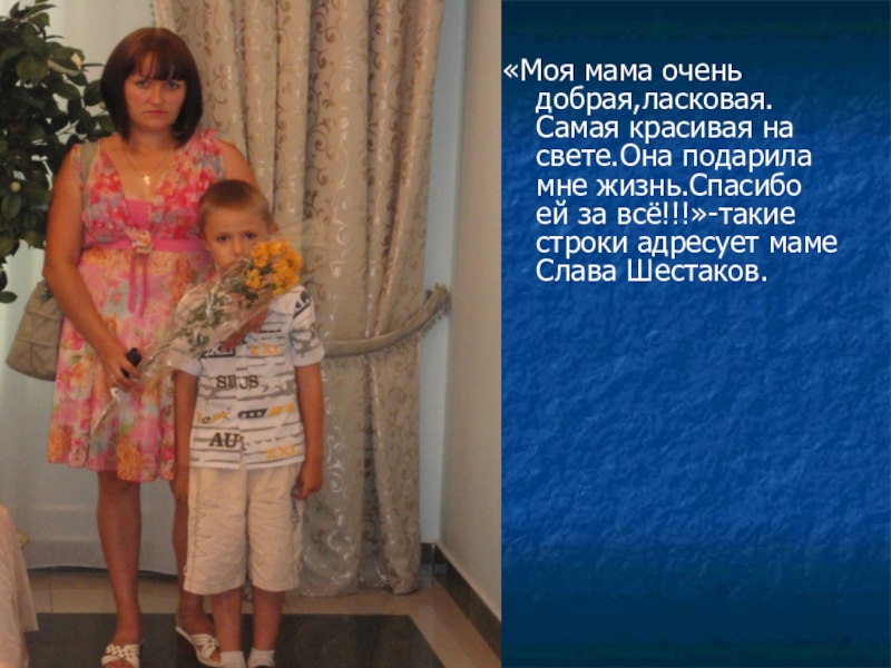 Слайд 9А вот эти строки Дима Зоткин посвящает маме: «Мамочка, ты очень