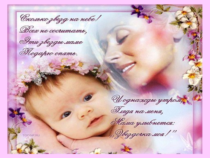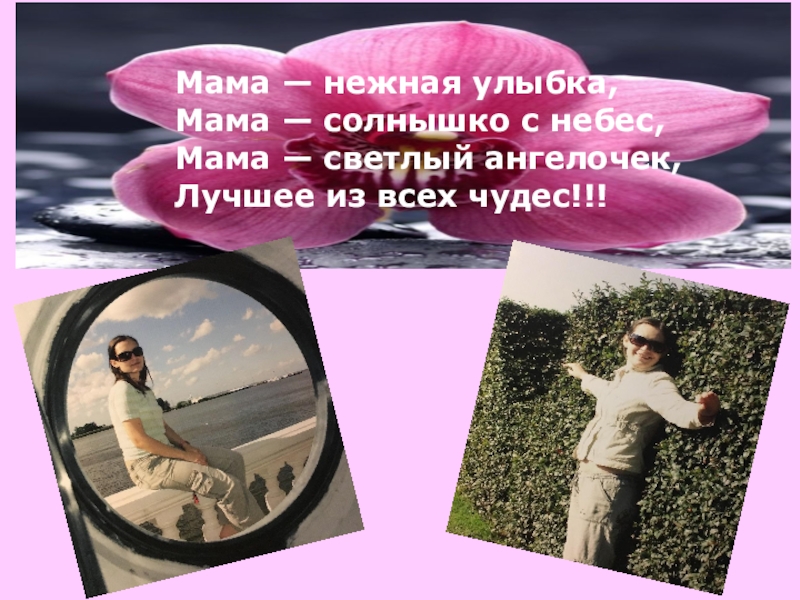 Мама — нежная улыбка,Мама — солнышко с небес,Мама — светлый ангелочек,Лучшее из всех чудес!!!