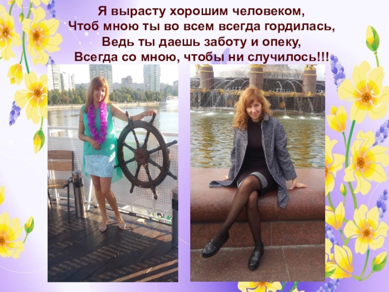 Я вырасту хорошим человеком,Чтоб мною ты во всем всегда гордилась,Ведь ты даешь заботу и опеку,Всегда со мною,