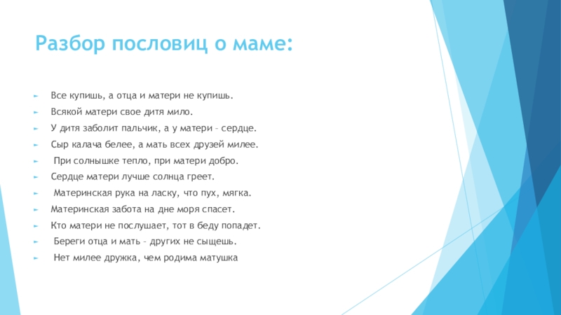 способствовать развитию детской речи через выразительное чтение стихов, пословиц, составление рассказов о маме.