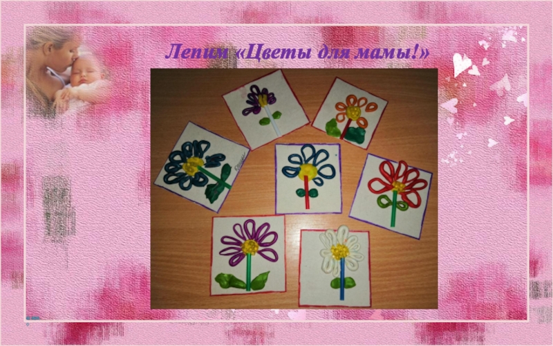 Продуктивная деятельность – рисование «Мамин портрет», лепка «Цветы для мамы», аппликация «Сердечко для мамочки».