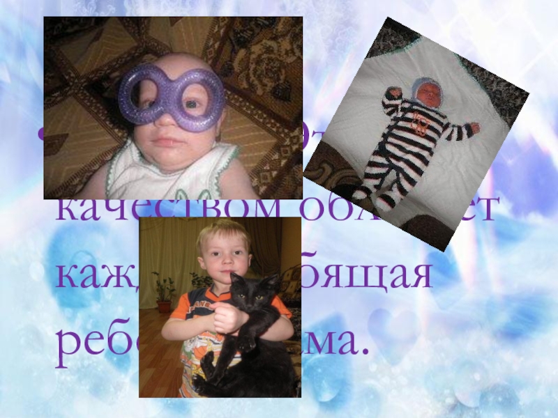 Слайд 7Доброта. Этим качеством обладает каждая любящая ребёнка мама.