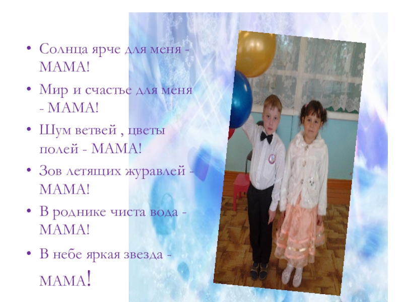 Презентация, доклад ко Дню Матери Мама-солнышко Моё.