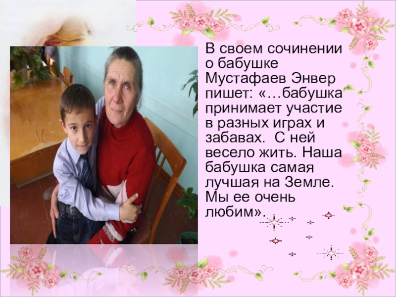 В своем сочинении о бабушке Мустафаев Энвер пишет: «…бабушка принимает участие