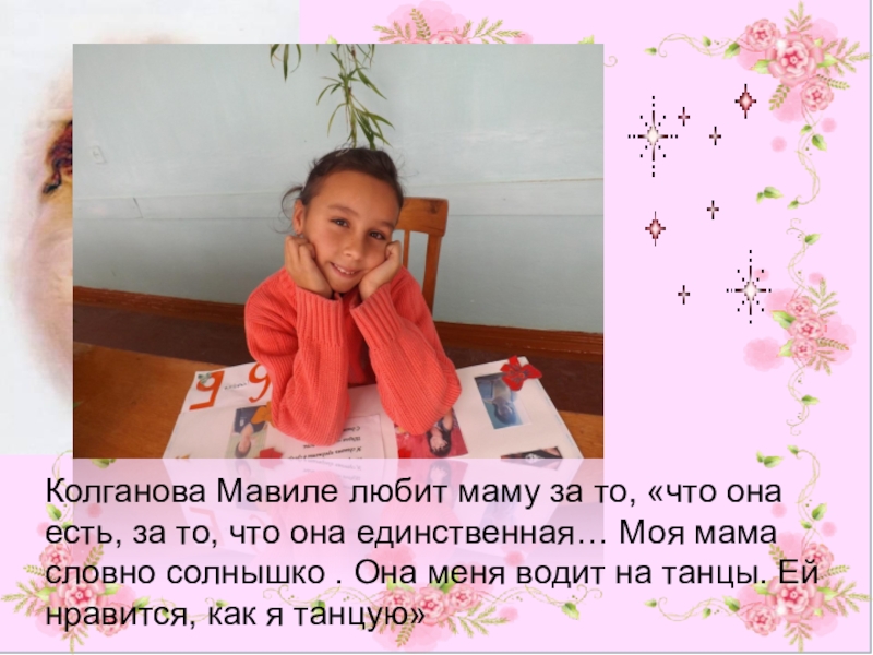Чопозова Крейсида пишет о том, что её мама «…очень добрая, ласковая
