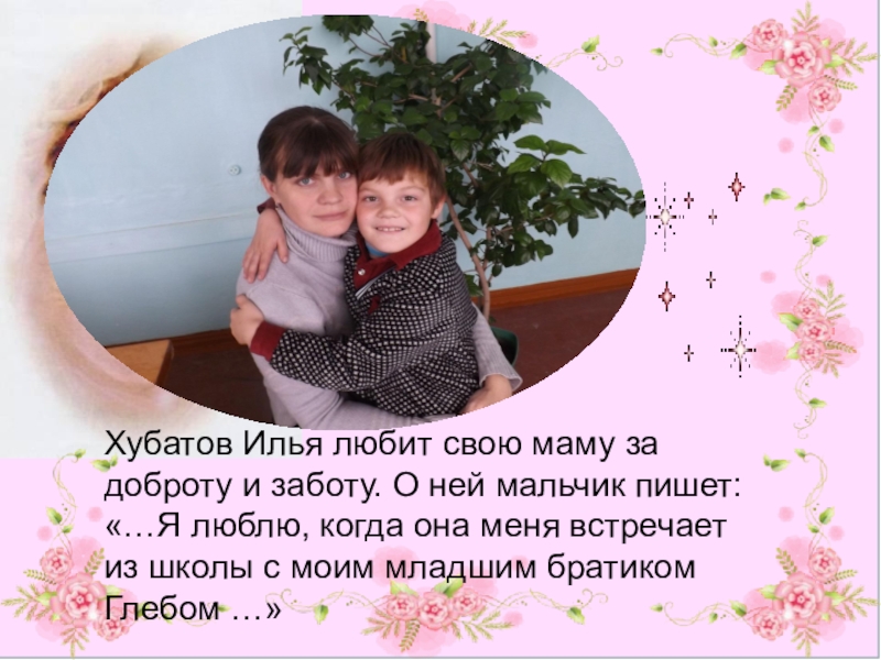 Хубатов Илья любит свою маму за доброту и заботу. О ней