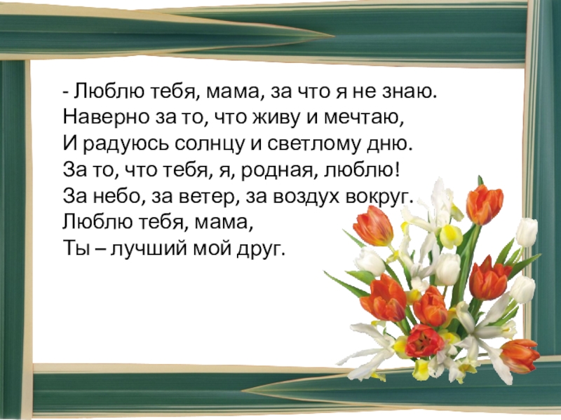Слайд 20- Люблю тебя, мама, за что я не знаю. Наверно за то,