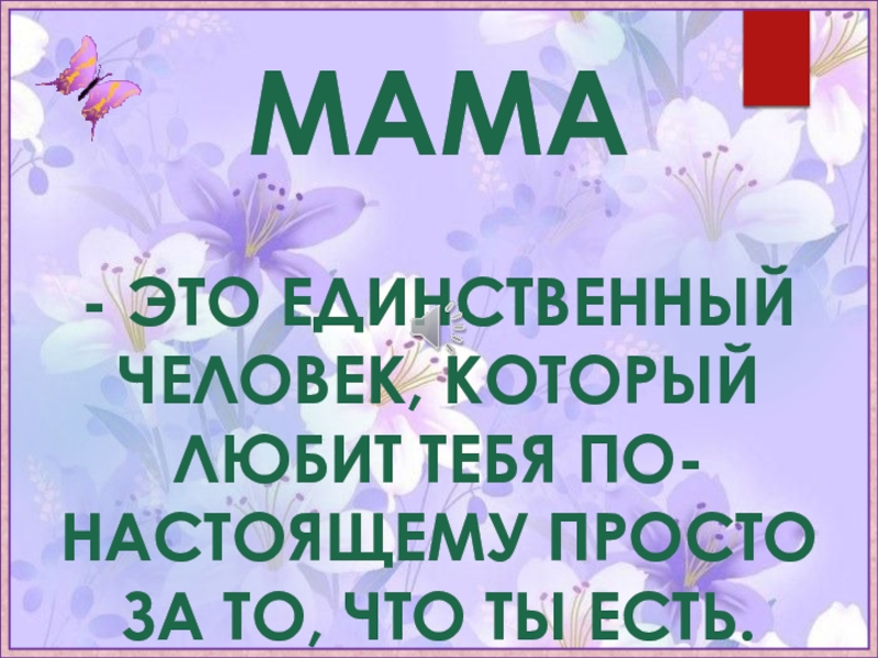 Мама- Это единственный человек, который любит тебя по-настоящему просто за то, что ты есть.
