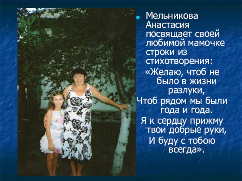 Слайд 10Мельникова Анастасия посвящает своей любимой мамочке строки из стихотворения: