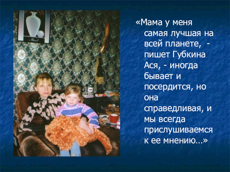Слайд 16«Мама у меня самая лучшая на всей планете, - пишет Губкина