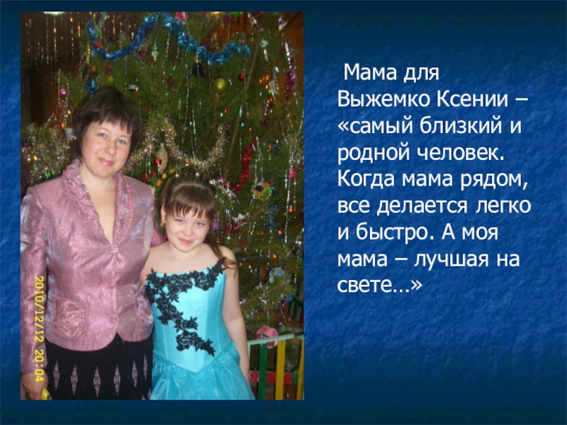 Слайд 17 Мама для Выжемко Ксении – «самый близкий и родной
