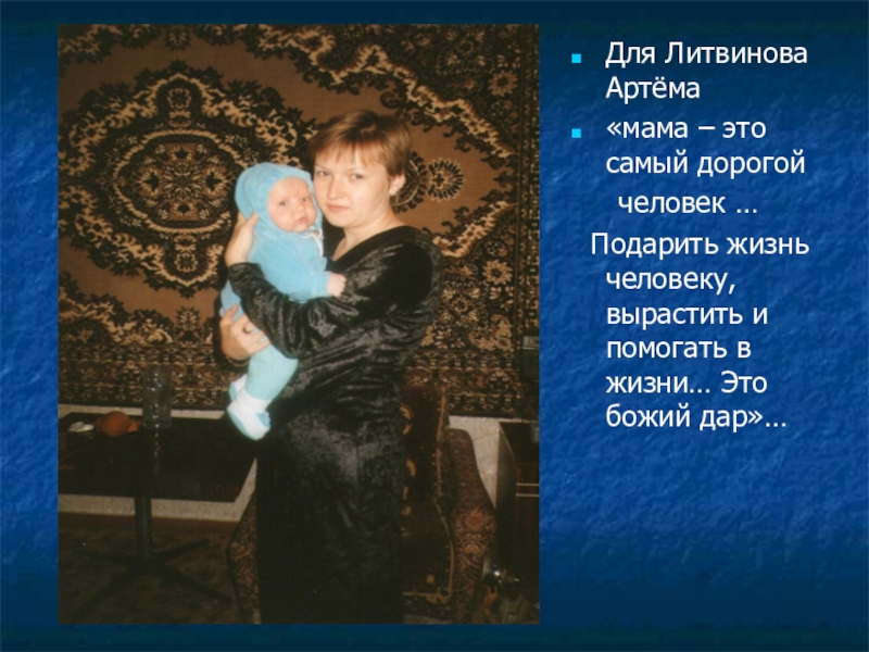 Для Литвинова Артёма «мама – это самый дорогой   человек … Подарить жизнь человеку, вырастить и