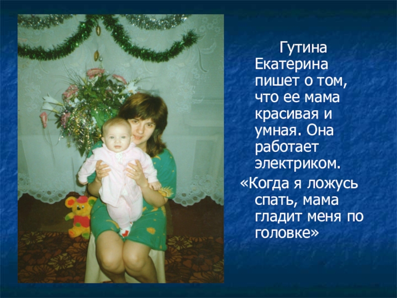 Слайд 14 Гутина Екатерина пишет о том, что ее мама