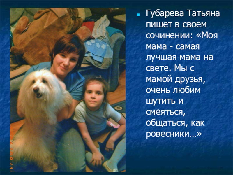 Слайд 8Губарева Татьяна пишет в своем сочинении: «Моя мама - самая лучшая