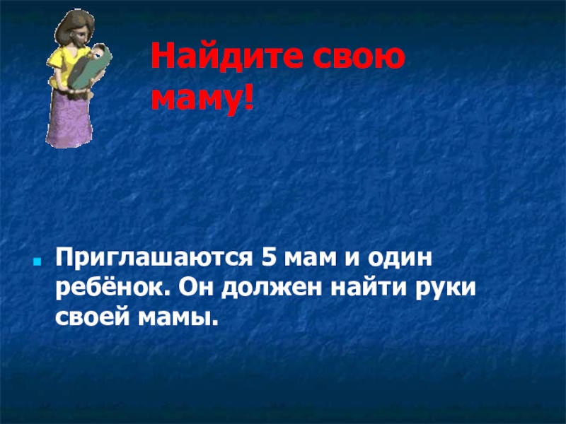 Приглашаются 5 мам и один ребёнок. Он должен найти руки своей мамы.Найдите свою маму!