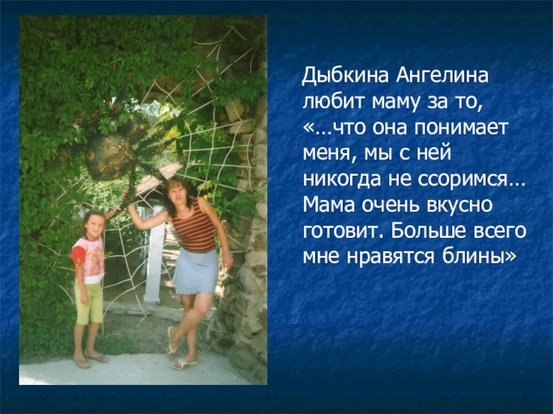 Слайд 18 Дыбкина Ангелина любит маму за то, «…что она понимает