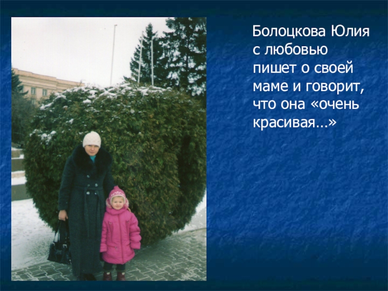 Слайд 13 Болоцкова Юлия с любовью пишет о своей маме и