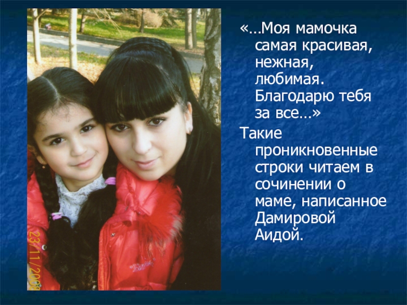 Слайд 19«…Моя мамочка самая красивая, нежная, любимая. Благодарю тебя за все…»