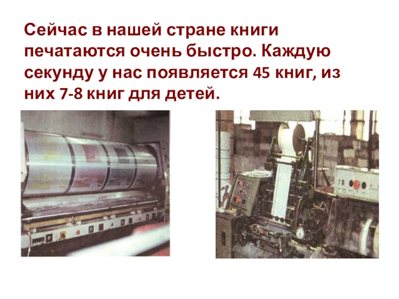 Слайд 12Сейчас в нашей стране книги печатаются очень быстро. Каждую секунду у