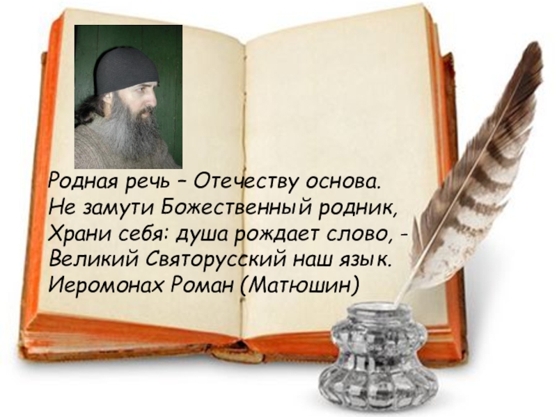 Родная речь – Отечеству основа.Не замути Божественный родник, Храни себя: душа рождает слово, - Великий Святорусский наш
