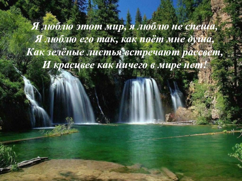 Я люблю этот мир, я люблю не спеша,Я люблю его так, как поёт мне душа,Как зелёные листья