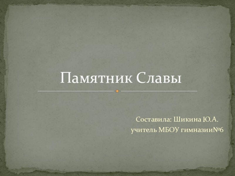 Составила: Шикина Ю.А.учитель МБОУ гимназии№6Памятник Славы