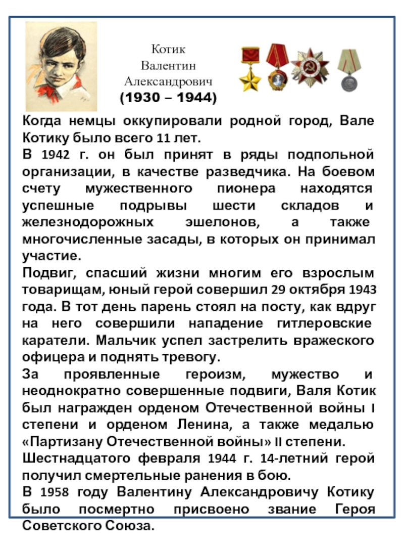 Но пришел час тяжелых испытаний и они доказали, каким огромным может стать обыкновенное маленькое детское сердце, когда разгорается в нем священная любовь к Родине, боль за судьбу своего народа и ненависть к врагам.