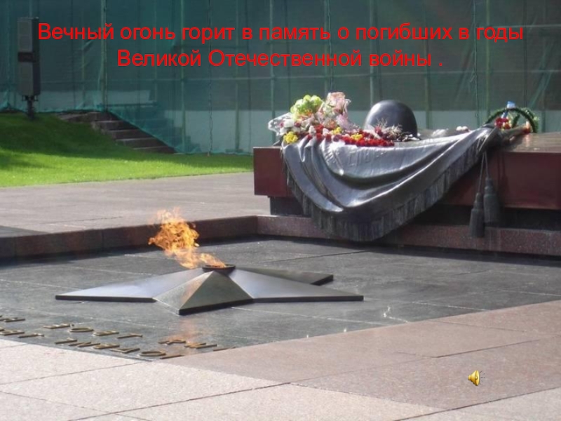 Слайд 11Вечный огонь горит в память о погибших в годы Великой Отечественной