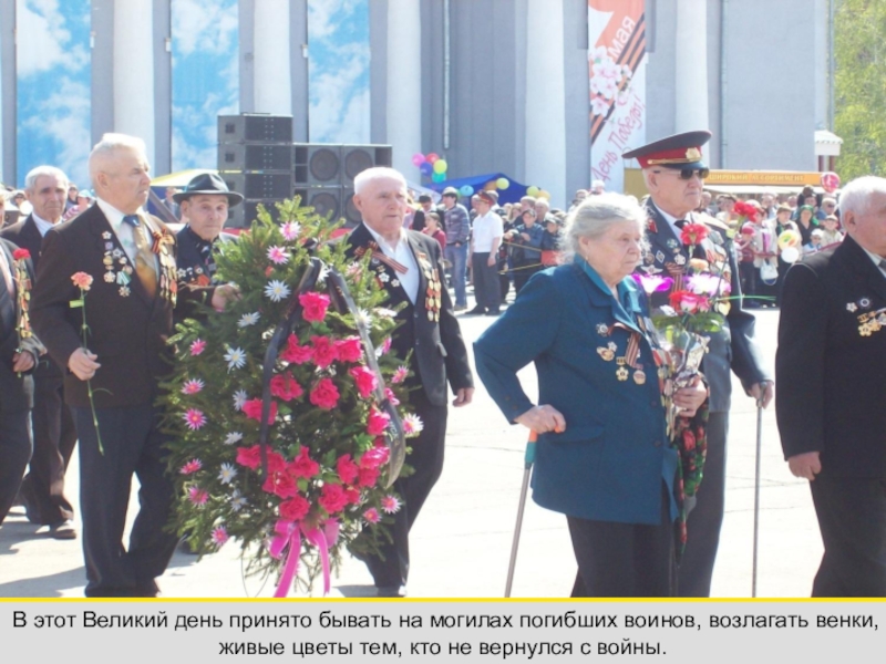В этот Великий день принято бывать на могилах погибших воинов, возлагать венки, живые цветы тем, кто не