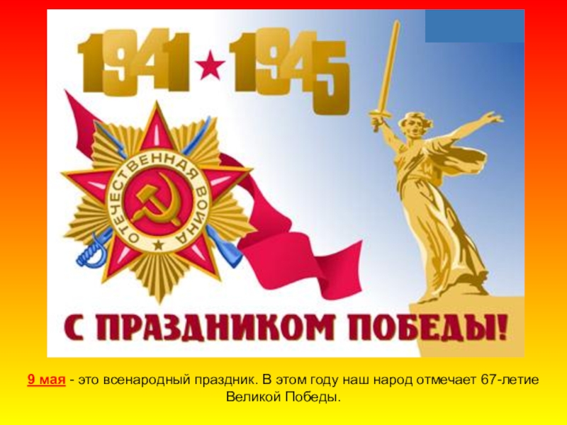 9 мая - это всенародный праздник. В этом году наш народ отмечает 67-летие Великой Победы.