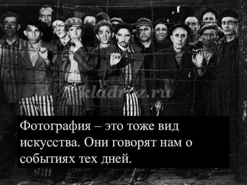Слайд 19Фотография – это тоже вид искусства. Они говорят нам о событиях