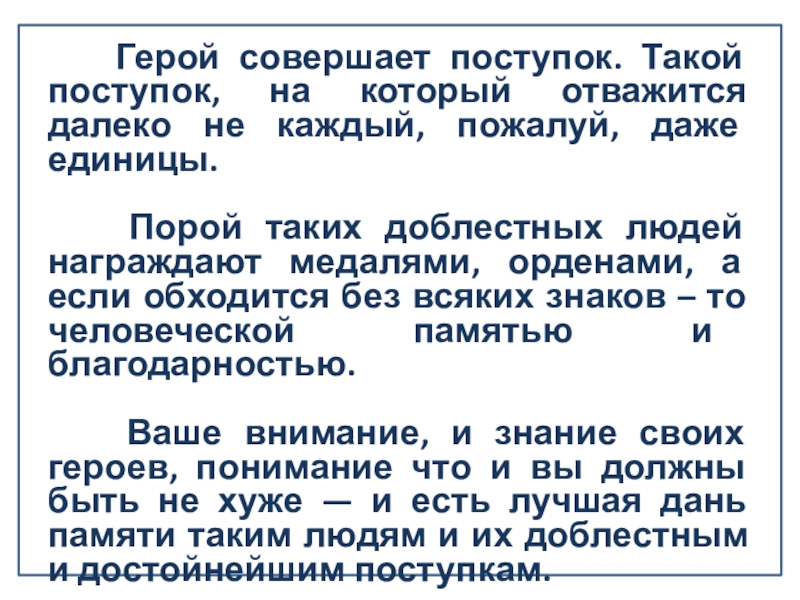 Ваше внимание, и знание своих героев, понимание что и вы должны быть не хуже — и есть лучшая дань памяти таким людям и их доблестным и достойнейшим поступкам.