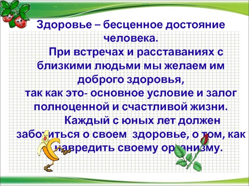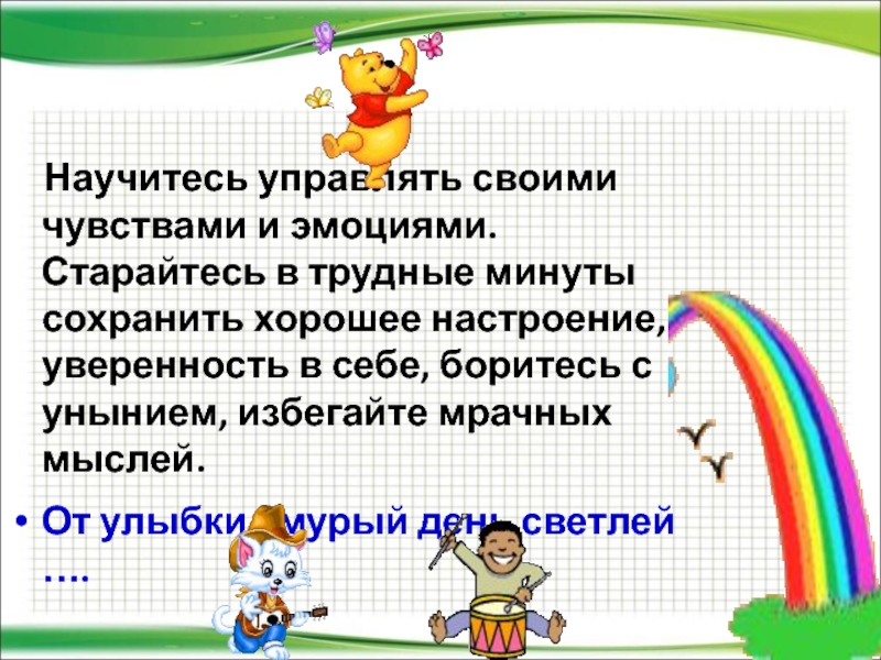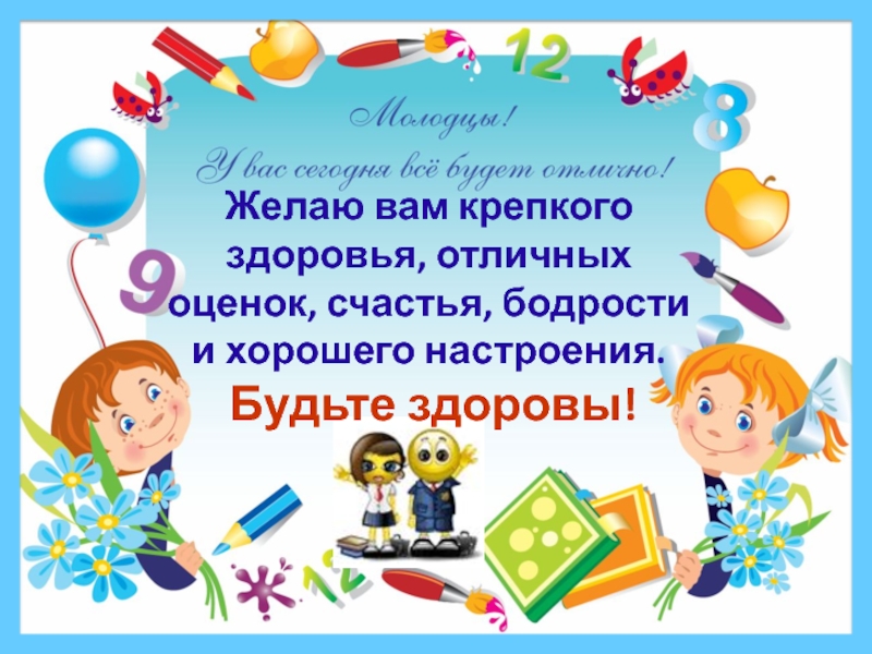 Желаю вам крепкого здоровья, отличных оценок, счастья, бодрости и хорошего настроения.