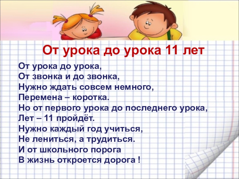 Слайд 20 Через 11 лет вы вспомните свой первый урок в