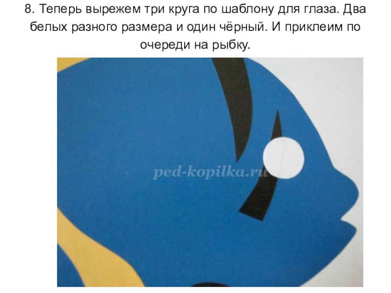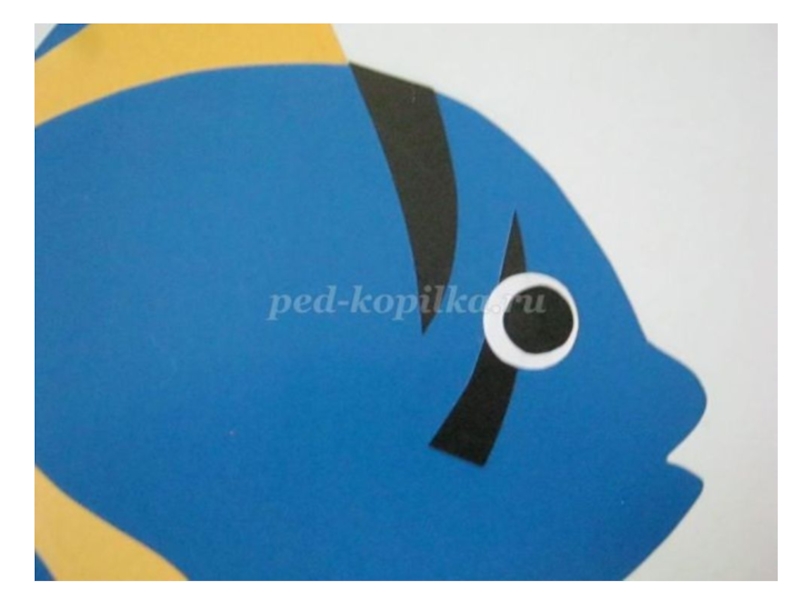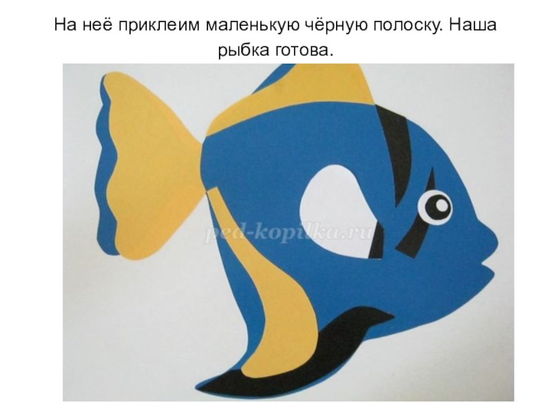 Слайд 17На неё приклеим маленькую чёрную полоску. Наша рыбка готова.
