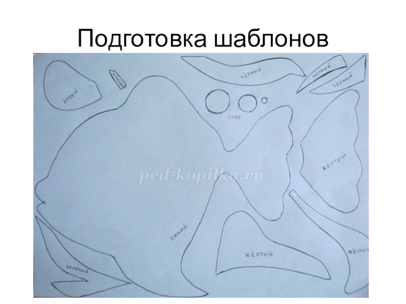 по шаблону вырежем туловище рыбки. Приклеим его на картон.