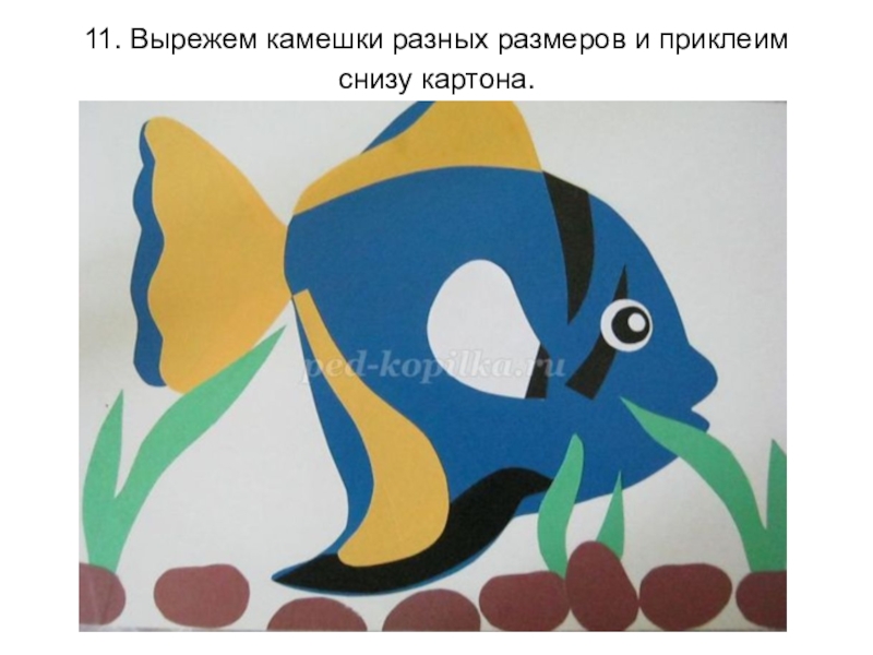 Слайд 1911. Вырежем камешки разных размеров и приклеим снизу картона.