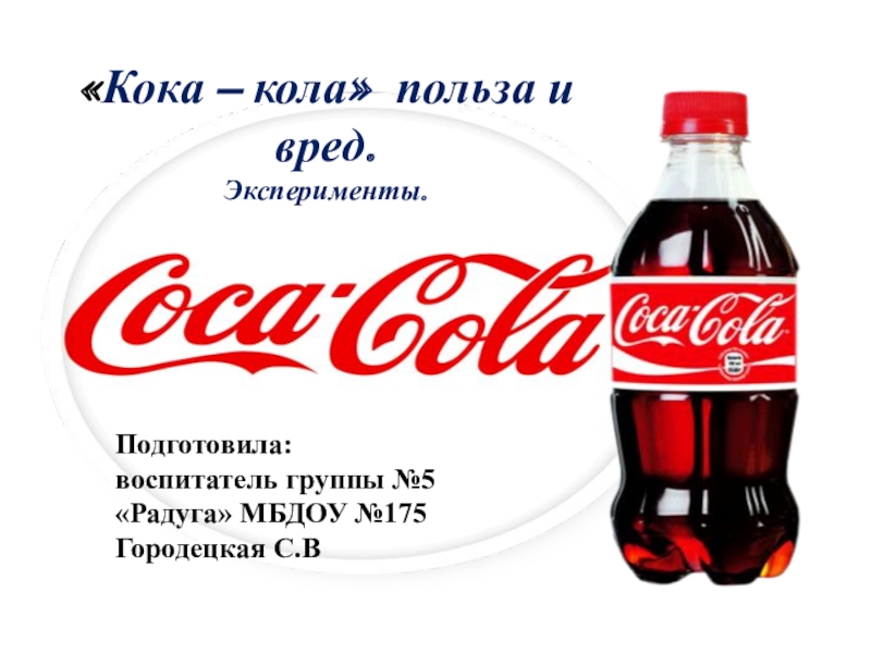 «Кока – кола» польза и вред.Эксперименты.Подготовила:воспитатель группы №5«Радуга» МБДОУ №175Городецкая С.В