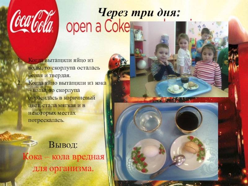 Презентация, доклад Кока-кола экспериментальная деятельность год второй