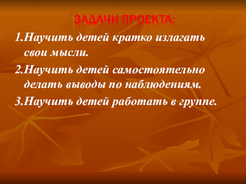 Слайд 41.Научить детей кратко излагать свои мысли.