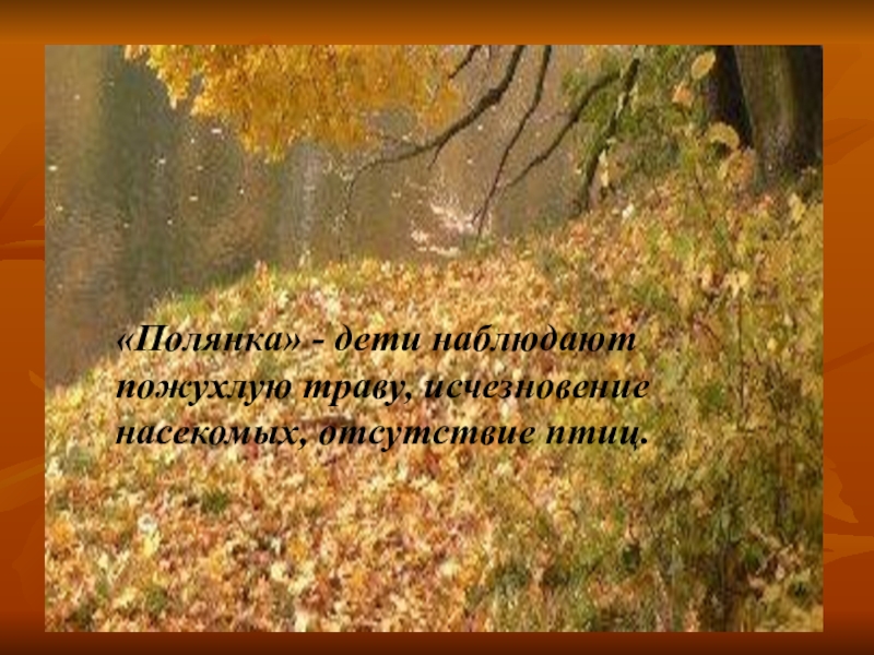 «Полянка» - дети наблюдают пожухлую траву, исчезновение насекомых, отсутствие птиц.