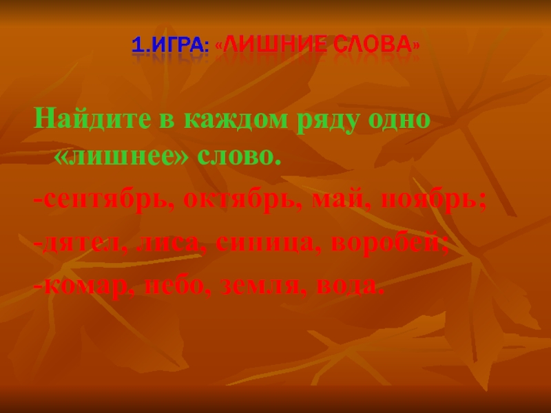 Слайд 26Найдите в каждом ряду одно «лишнее» слово.