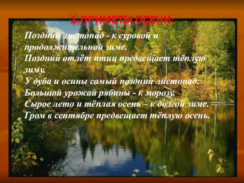 Слайд 10Поздний листопад - к суровой и продолжительной зиме.