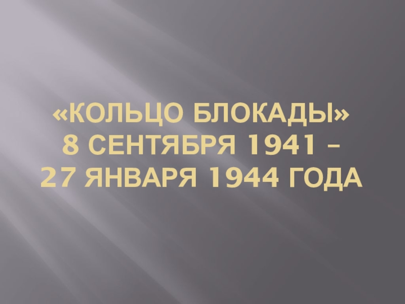 Слайд 1«КОЛЬЦО БЛОКАДЫ» 8 сентября 1941 – 27 января 1944 года