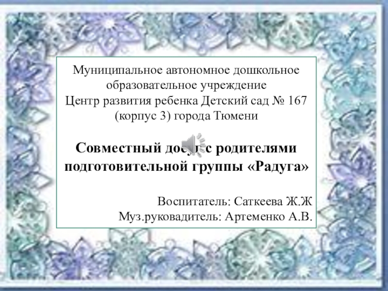 Совместный досуг с родителями подготовительной группы «Радуга»