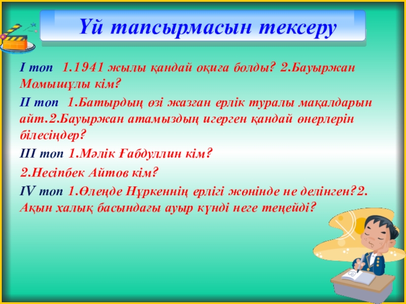 Қарамен жазылған сөздердің астын сыз, оларға сұрақ қой.