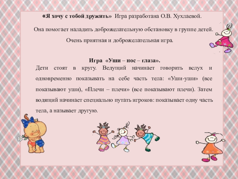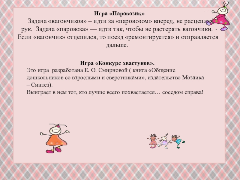 Это игра разработана Е. О. Смирновой ( книга «Общение дошкольников со взрослыми и сверстниками», издательство Мозаика – Синтез).