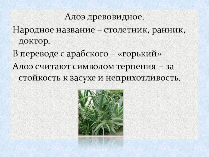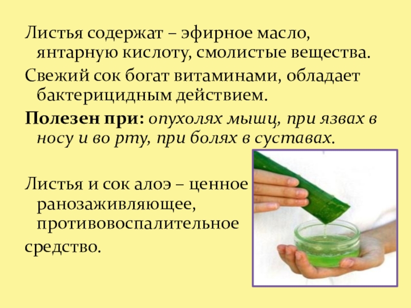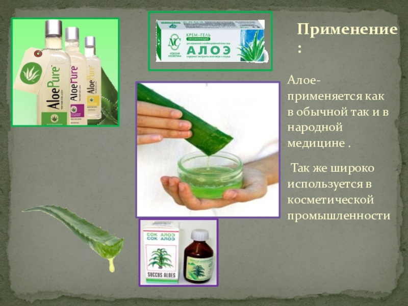 Слайд 9Алое- применяется как в обычной так и в народной медицине .