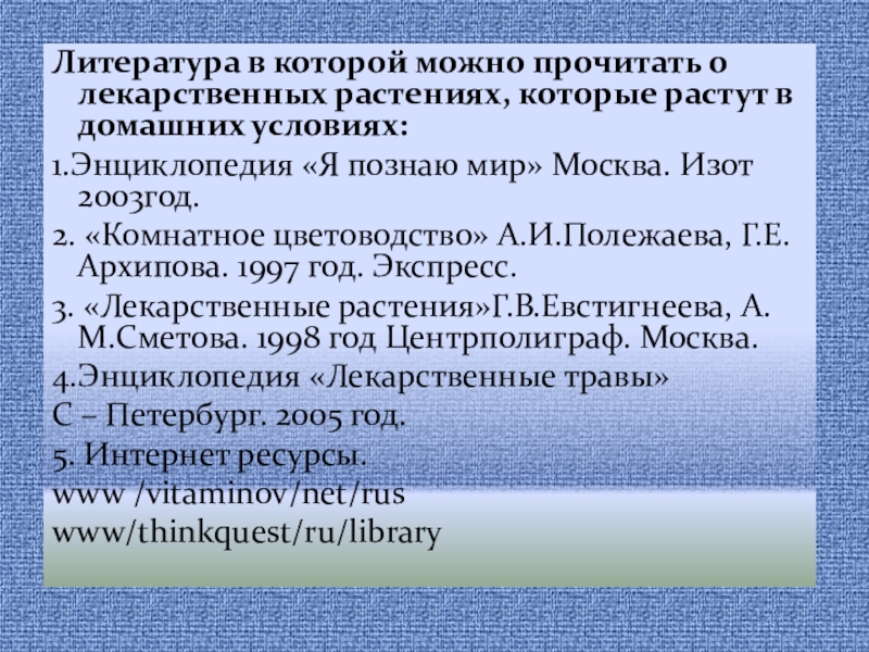 Слайд 31Литература в которой можно прочитать о лекарственных растениях, которые растут в